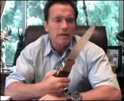 Шварценеггер поблагодарил калифорнийцев за идею с ножом в руке