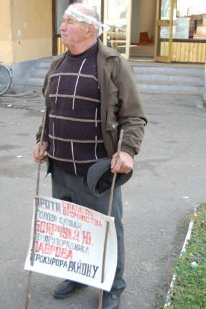 Мужчина объясняет, что выступает против действующего главы Юрия Боярчука, который вновь баллотируется. Требует, чтобы его кандидатуру сняли с выборов.
