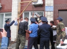 "Это как украинцы, так чего своих бьете? Такие же менты, как и те", - кричит женщина лет 50-ти на коротко подстриженного мужчину в цветной футболке и синих джинсах.