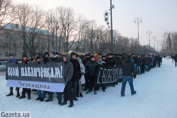 Маршем в защиту семьи Павличенко прошлись сегодня в Черкассах местные ультрас и представители молодежных патриотических организаций.