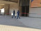 На здании уже вывесили флаги Украины с черными лентами и разместили ограждающие полоски во избежание образования толпы.