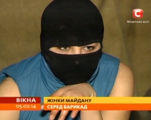 Журналистам телеканала "СТБ " удалось пообщаться с одной из "воинственных" девушек. Если два месяца назад активистка Яна носила каблуки, платья и красивые прически, то сейчас на ней толстая куртка, на ногах - брюки с дырками от осколков гранат, а лицо закрывает балаклава.