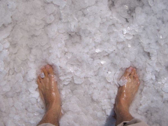 Из-за аномальной жары произошло резкое испарение воды и выпадения соли на дно Куяльницкого лимана.