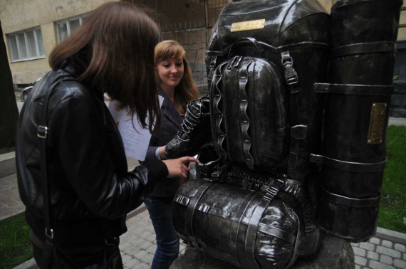 "Старейшей в Украине является именно наша географическая школа при Львовском университете, который работает с 1882 года, - говорит декан факультета Владимир Биланюк. - Поэтому и инициативу памятника рюкзаку мы также решили реализовать первыми. Нашли меценатов, по европейским стандартам обустроили территорию, когда-то в прошлом бывшую двором военной кафедры. Кроме того, во Львов приезжают масса туристов, и все преимущественно с рюкзаками. Это будет подарок туристам Евро-2012. А также нашим студентам-географам, которых обучается сейчас две тысячи."