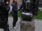 Во Львове есть много небольших памятников - рыбе, которая смеется, лягушке, собаке, которая мочится, монаху с бочкой пива. Такие скульптуры называются камерными, т.е. в человеческий рост.