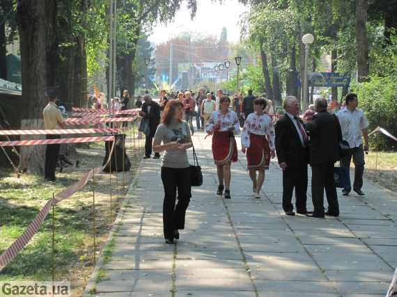 23 сентября в Полтаве - день города. С самого утра люди шли к мемориалу солдатской славы, клали цветы. Рядом с памятником - парк. Там стоит несколько солдатских палаток, внутри полтавчан угощали пшеничной и гречневой кашей.