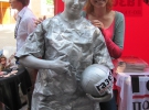 Больше людей в центральной части города. Здесь проходит выставка народных мастеров. Те торгуют керамикой, картинами, вышивками. По ул. Октябрьской на асфальте разложены картины из цветов. Одна из них изложена лепестками роз, посередине - два белых лебедя из хризантем.