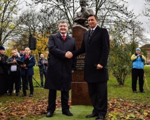 "Наша дружба должна иметь определенные символы. Мне очень нравится идея мэрии Любляны создать Аллею художников. Какая же может быть Аллея художников, если здесь не представлено Украины? А кем лучше всего может быть представлено Украины? Тарас Шевченко и Григорий Саввич Сковорода", - сказал Петр Порошенко во время церемонии открытия памятника.