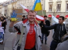 "Мы выступаем за демократическую Украину в Евросоюзе! Давайте выразим нашу солидарность Украине", - говорит в мегафон Томаш Гутт - соорганизатор мероприятия, ассистент депутата Европарламента Павла Залевского.