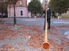 Сегодня в Виннице в парке Козицкого 71-летний Франц Сталдер из Швейцарии играл на этнической швейцарской трубе. Ее привез специально с собой, чтобы показать жителям. Труба называется духовный музыкальный инструмент Альпийский горн.