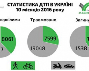 Ежегодно на дорогах Украины погибает до 3 тыс. человек. Это почти в два раза больше, чем количество погибших в зоне АТО. За первые шесть месяцев 2016 года в авариях пострадало 15 500 украинцев.