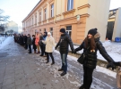 В Вильнюсе поддержку Евромайдану выразили почти тысяча человек. 715 из них, по замыслу, взялись за руки в живую цепь от Посольства Украины к дому Европейской Комиссии. Число 715 означает количество километров между столицей Литвы Украине.