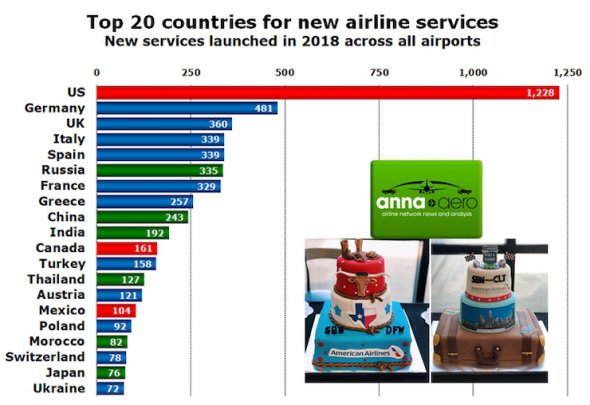 Всего в 2018 году в мире запустили более 3 750 новых регулярных авиамаршрутов.