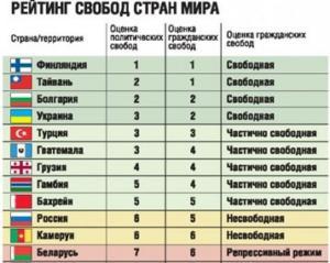 Частично свободных стало меньше – 58 (30%), поскольку 4 страны были переведены в категорию "несвободных" – их сейчас 47 (24%).