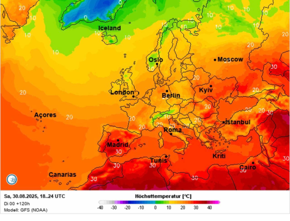 "Перед вами - карта прогноза температуры воздуха на ближайшую субботу. И она говорит, что Украина завершает лето одной из самых жарких стран Европы. Действительно, немного заблаговременная волна холода уже начинает откатываться назад, то есть, вперед, в более глубокую осень, а у нас еще побудет лето", - написала она.