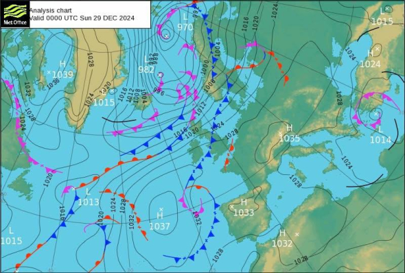"Осадков завтра не будет, потому что практически вся континентальная Европа, включительно, конечно, с Украиной, будет находиться под влиянием масштабной антициклонической области. Карта внизу. Характерной особенностью 31 декабря и новогодних первых дней будет сильный ветер западных направлений! Осторожно", - предупредила она.