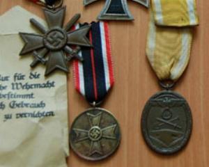 "При досмотре пассажирского поезда "Одесса-Москва" сотрудники брянской таможни обнаружили в ящике для угля 17 документов на немецком языке и 17 памятных знаков в виде крестов, украшенных фашистской свастикой. Найденные документы - трудовые книжки, удостоверения личности датированы 1920-1930 годами", - говорится в сообщении.