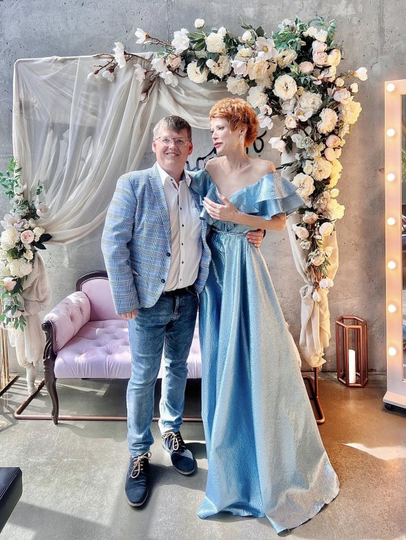 Розенко на фотографии в синем пиджаке, рубашке и джинсах, а Лебедь в голубом платье.
