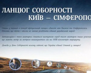 Чтобы присоединиться нужно авторизоваться на сайте акции через соцсети. Онлайн-цепь формируется из аватарок участников, которые одна за другой выстроятся на карте по маршруту протяженностью 1058 км. Отправная точка на Софийской площади Киева, а конечная в парке Тараса Шевченко в Симферополе.