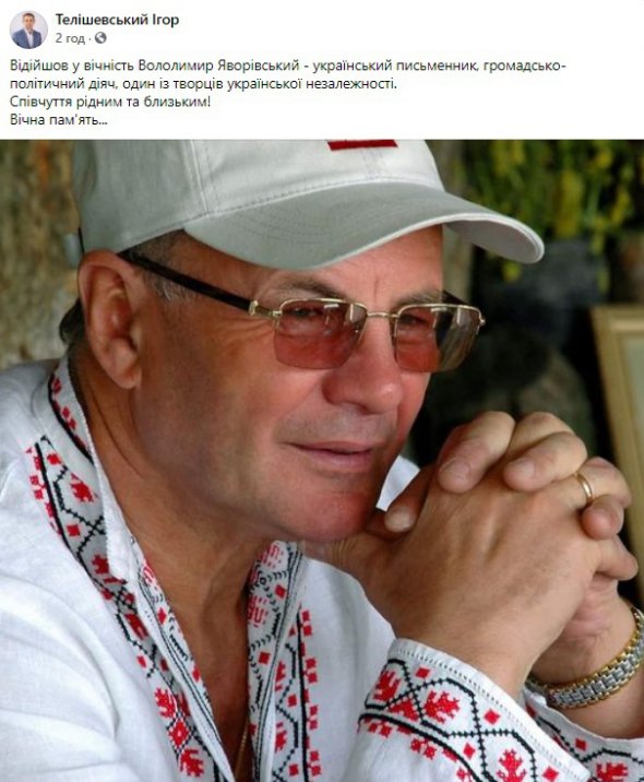 О печальной вести написал в Facebook экс-депутат Львовского городского совета Игорь Телишевский.