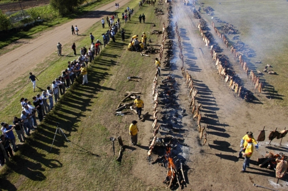 В празднике, который состоялся в городе Хенераль-Пико (General Pico), расположенном в 500 километрах к юго-западу от столицы Аргентины Буэнос-Айреса, участвовали 90 кулинаров, которые продемонстрировали свое умение готовить "асадо" на вертелах и специальных металлических решетках - "парильях".