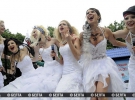 Парад невест прошел в Минске вчера, 21 июля. Подвенечные платья надели 36 девушек. Они разделились на 6 команд, представляя, все регионы Беларуси.