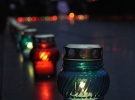 Ровно в 16:00 объявили минуту молчания, после которой каждый желающий мог зажечь лампадки, из которых на площади были выложены слова "Голодомор 80". Всего зажгли около тысячи свечей, их установили вокруг памятника Шевченко.