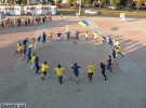 В 19:30 снова повторяется танцевальный флеш-моб: волонтеры образовывают флаг и карту Украины.