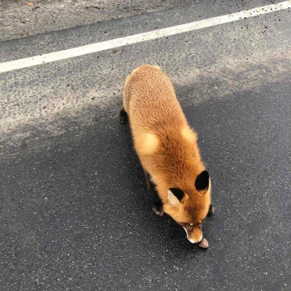 В Чернобыле дикая лиса или лис постоянно выходит на асфальтовую дорогу и выпрашивает еду у прохожих. Туристы и сотрудники местных предприятий в восторге останавливаются возле рыжей попрошайки, снимают ее и бросают что-нибудь поживиться.