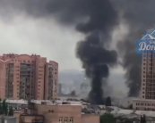 Очевидцы публикуют кадры большого столба густого темного дыма за жилыми кварталами.