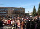 10:00 утра. На окраине города возле гетманского знака собираются казаки, военнослужащие, гости праздника. Для присутствующих молодые ребята в казацком наряде верхом демонстрируют приемы рукопашного боя на саблях.
