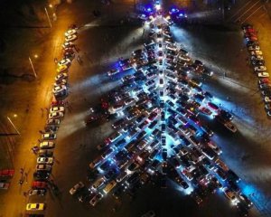 В Киеве водители выстроили елку из автомобилей.