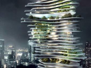70-этажный небоскреб "Городской лес" планируют построить в центре города Чунцин (Chongqing). Все этажи будет иметь абстрактную изогнутую форму и будут расположены с небольшим смещением от центральной оси здания. Внутри центральной опоры небоскреба, которая будет держать этажи, разместятся механические системы и лифты.