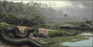 Исследователи, профессор Джейсон Хэд из Торонто и его коллеги из университетов Индианы и Флориды (США) обнаружили останки гигантской змеи вместе с окаменелыми костями ее жертв - крокодилов и черепах - при раскопках в Колумбии. Позвонки змеи были найдены в слоях, сохранивших остатки древнейших известных в Новом свете тропических лесов, существовавших здесь 58-60 миллионов лет назад.