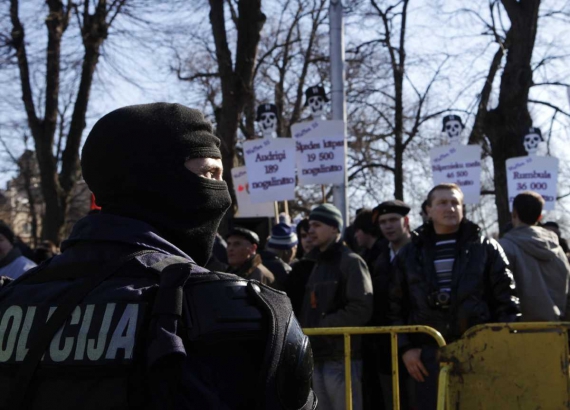 К памятнику Свободы было заранее стянуто большое количество полиции. Колонну легионеров также окружало полицейское оцепление.
