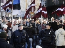 В Риге антифашисты устроили акции протеста против шествия ветеранов латышского легиона SS. Противники легионеров собрались у памятника Свободы, где традиционно заканчивается шествие.