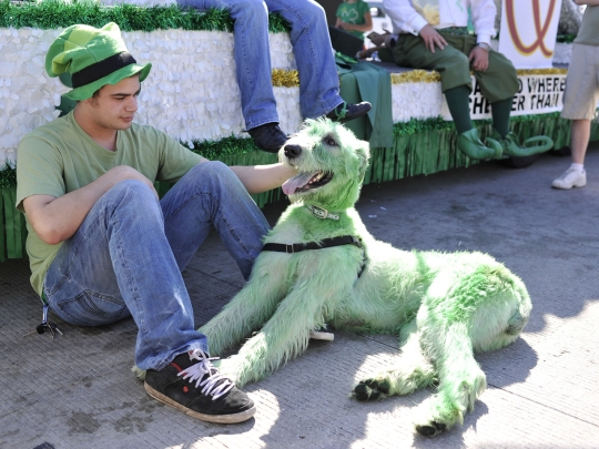 Символом праздника из года в год становится зеленый цвет: люди надевают зеленые одежды, едят зеленую еду, пьют зеленое пиво, провозглашая классический праздничный тост: "чтобы крыша над нашей головой никогда не падала, а наши друзья из под этой крыши никогда не уходили ".