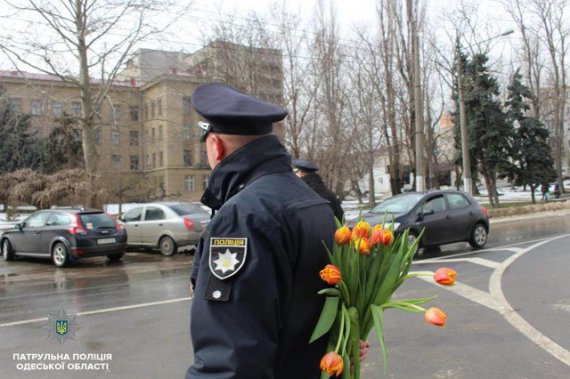 Патрульные Одессы уже третий год подряд поздравляют женщин-водителей, полиция дарит цветы и хорошее настроение. Правоохранители напоминают о соблюдении правил дорожного движения и желают счастливого пути.