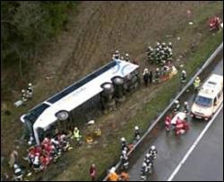 ДТП произошло вчера вечером на магистрали А4. По предварительным данным, водитель не справился с управлением, автобус выехал на обочину и перевернулся на бок.