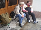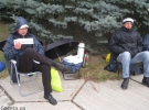 Пришли к облгосадминистрации. Принесли стулья, плакат и повязку на голову с надписью "Голодовка". Их поддержали еще 76 вкладчиков. Приходят посменно по 10 - 15 человек. Приносят голодающим воду и горячий кофе без сахара.