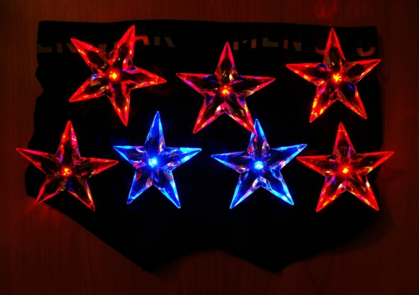 Российская художница Ирина Романовская предложила мужчинам украсить задницу звездочками, к тому же патриотическими. Звезды на трусах не только светятся, но и переливаются в цветах российского флага. При этом дизайнер на полном серьезе утверждает, что такое белье наверняка порадует любимых женщин.