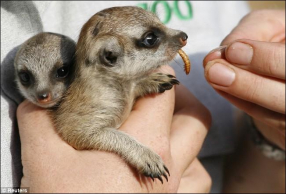 Малави вынашивала детеныши 77 дней, при рождении Занзибар и Найроби весили около 40 грамм. Теперь Найроби весит 159 граммов, а его брат Занзибар - около 130 граммов. Смотритель рассказывает, что малыши очень быстро растут - они достаточно много едят, и поведение их очень похожая на поведение взрослых сурікатів.