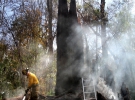 По данным лесничества штата, 36-метровый кипарис, который носил имя "Сенатор", загорелся в понедельник утром. Прибывшие на место инцидента спасатели были вынуждены размотать почти 240 метров пожарного рукава, чтобы приступить к борьбе с пламенем.