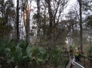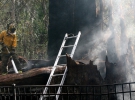 Однако, несмотря на их усилия, сначала упала обгоревшая верхушка кипариса, а затем древесный гигант обрушился полностью.