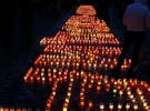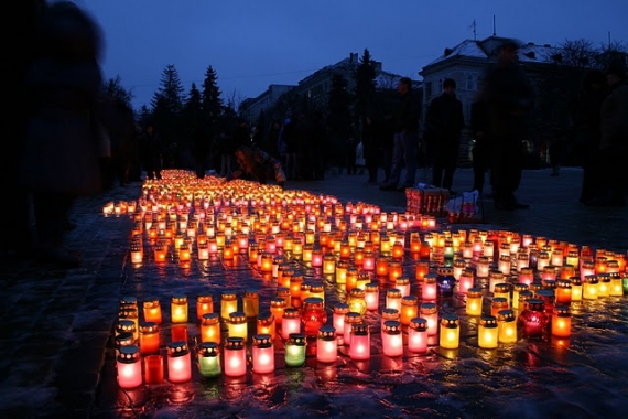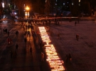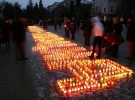 Молодежь Тернополя в день памяти Голодомора 1932-1933 годов выложила на центральной площади из свечей лозунг "Голодомор - геноцид". Акцию инициировали активисты организации Молодежный националистический конгресс. Чтобы составить это выражение из двухметровых букв, собрали 1800 свечей. На разметку площади, выкладку лампадок и их зажжение ушло пять часов.