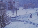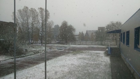 В городе Славутич Киевской области сегодня утром выпал первый снег.