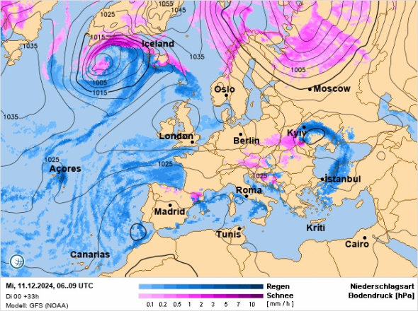 Циклон вместе с атмосферными фронтами будет определять завтра, 11 декабря, влажную и облачную погоду в Украине.