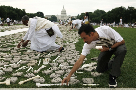 В Вашингтоне активисты выложили в субботу инсталляцию из более чем миллиона искусственных костей, чтобы призвать власти США активнее бороться с массовыми убийствами по всему миру.