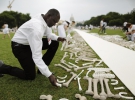 "Мы делаем это, чтобы привлечь внимание к геноциду и массовым зверствам, которые происходят в Судане, Южном Судане, Демократической республике Конго, Бирме и Сомали. На протяжении последних трех лет более 125 тысяч школьников, художников и активистов создавали эти кости, и сегодня у нас здесь, на Национальной аллее, представлены 1 миллион 18 тысяч 260 костей в качестве визуальной репрезентации массового захоронения", - сказала координатор в США проекта One Million Bones Кэтлин Макьюэн.
