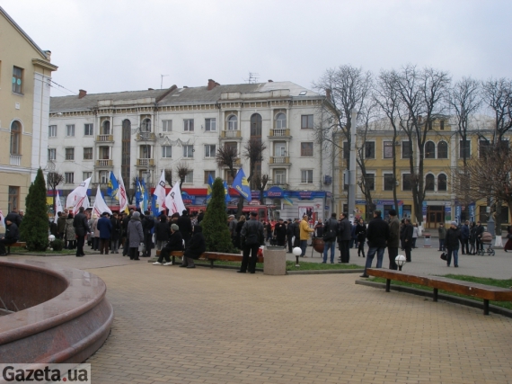 22 ноября на Театральной площади в Виннице собрались около 200 представителей оппозиции на митинг в честь 8-й годовщины Оранжевой революции. Держали в руках флаги "Батькивщины", "Свободы" и украинские национальные флаги. Звучали песни об Украине. Посреди площади стоял большой барабан на треноге. У него попарно били мужчины.